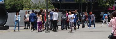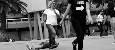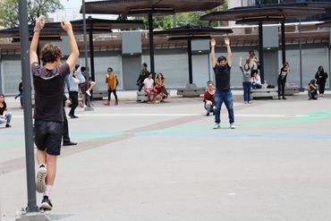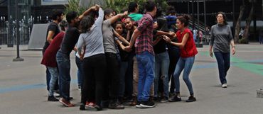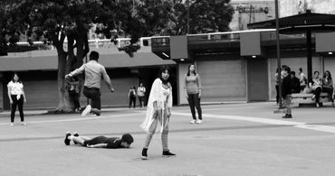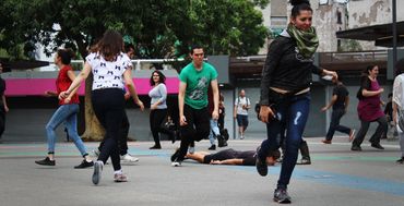 En el proceso, incorporamos dinámicas de cuidado colectivo, ejercicios de alerta corporal y espacial y acciones coreográficas que se convertirían en anclajes de la partitura. Poco a poco, el juego empezó a aparecer demandando su derecho a existir, más allá de los espacios de recreo y de las tardes de niñez. El juego sabía de su amabilidad para facilitar el encuentro, diálogo y negociación entre desconocidos y nos recordaba cómo también desde lo lúdico nos podemos sentir libres. Por esta razón, esta partitura se transformó en una sobre el encuentro, cuidado y juego en colectivo.