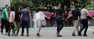 Maravatío se llevó a cabo por primera vez, en mayo 2018 en la Glorieta de Insurgentes de la CDMX, decisión consensuada por el grupo neuronal, con el deseo de habitar/transformar este lugar emblemático de tránsito y encuentro de propios y extraños de la CDMX y crear una fisura en el espacio público para hacer visible que existen otros caminos afectuosos para habitar/estar en colectividad. De 22 personas que iniciamos el proyecto, nos convertimos en 50, que ese día por primera vez libremente nos encontramos para darnos cuidado, jugar y divertirnos.